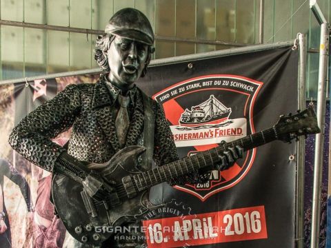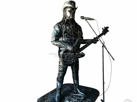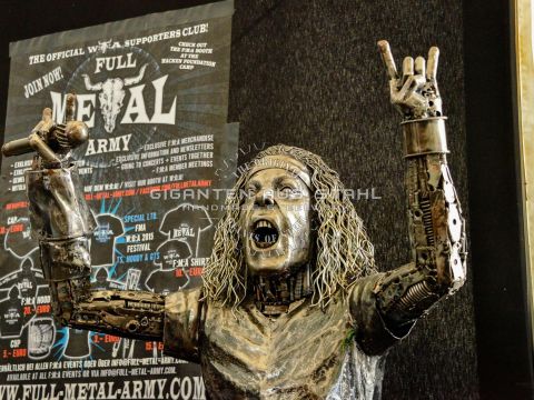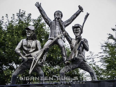 Lemmy in Übergröße, die Scorpions, Ozzy Osbourne, Angus Young, Alice Cooper, das Maskottchen von Motoerhead, Eddy the Trooper und die übergroße Werner Skulptur