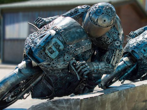 Rennfahrer Valentino Rossi steht im Hotel neben dem Technik Museum Sinsheim.